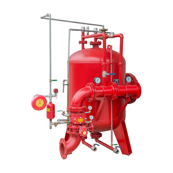 壓力泡沫比混合裝置主要由帶膠囊的泡沫液壓儲罐和文丘里原理制成PHY當系統(tǒng)管網(wǎng)中的水流通過比例混合器減壓孔板時,形成壓差。部分處的部分水(3%或6%)通過泡沫罐的進水管進入罐內(nèi),擠壓膠囊,將膠囊中的泡沫液通過泡沫罐的出水管擠壓到比例混合器的低壓處,與水混合形成泡沫混合物。泡沫混合物輸出到泡沫生產(chǎn)設(shè)備(中、低、高倍數(shù)泡沫生產(chǎn)器、泡沫槍、泡沫槍等)。)和空氣混合產(chǎn)生泡沫滅火。由于噴嘴前后壓差小,膠囊中的泡沫液通過吸管擠出,與水混合成泡沫混合液流,通過空氣泡沫生產(chǎn)器或其他噴射設(shè)備噴出泡沫進行滅火。罐內(nèi)有一個橡膠膠囊,將水與泡沫液分開。每次使用后,罐內(nèi)和泡沫液不能混合,保持原泡沫液的性能不變,可以繼續(xù)使用,避免泡沫液的浪費。