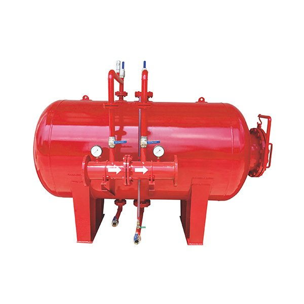 壓力泡沫比混合裝置主要由帶膠囊的泡沫液壓儲罐和文丘里原理制成PHY當(dāng)系統(tǒng)管網(wǎng)中的水流通過比例混合器減壓孔板時(shí),形成壓差。部分處的部分水(3%或6%)通過泡沫罐的進(jìn)水管進(jìn)入罐內(nèi),擠壓膠囊,將膠囊中的泡沫液通過泡沫罐的出水管擠壓到比例混合器的低壓處,與水混合形成泡沫混合物。泡沫混合物輸出到泡沫生產(chǎn)設(shè)備(中、低、高倍數(shù)泡沫生產(chǎn)器、泡沫槍、泡沫槍等)。)和空氣混合產(chǎn)生泡沫滅火。由于噴嘴前后壓差小,膠囊中的泡沫液通過吸管擠出,與水混合成泡沫混合液流,通過空氣泡沫生產(chǎn)器或其他噴射設(shè)備噴出泡沫進(jìn)行滅火。罐內(nèi)有一個(gè)橡膠膠囊,將水與泡沫液分開。每次使用后,罐內(nèi)和泡沫液不能混合,保持原泡沫液的性能不變,可以繼續(xù)使用,避免泡沫液的浪費(fèi)。